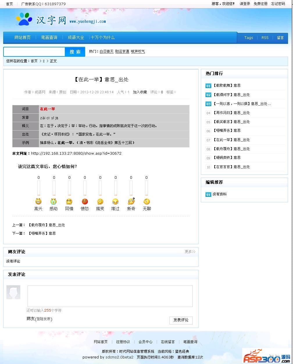本站程序 使用 SDCMS2.0 免费版 网站后台路径:http://127.0.0.1/admin/ 用户名:admin 密码:admin 下载地址 下载地址已转移到新版网站,请点击左上角-首页,在新版网站搜索此套源码的标题进行下载。