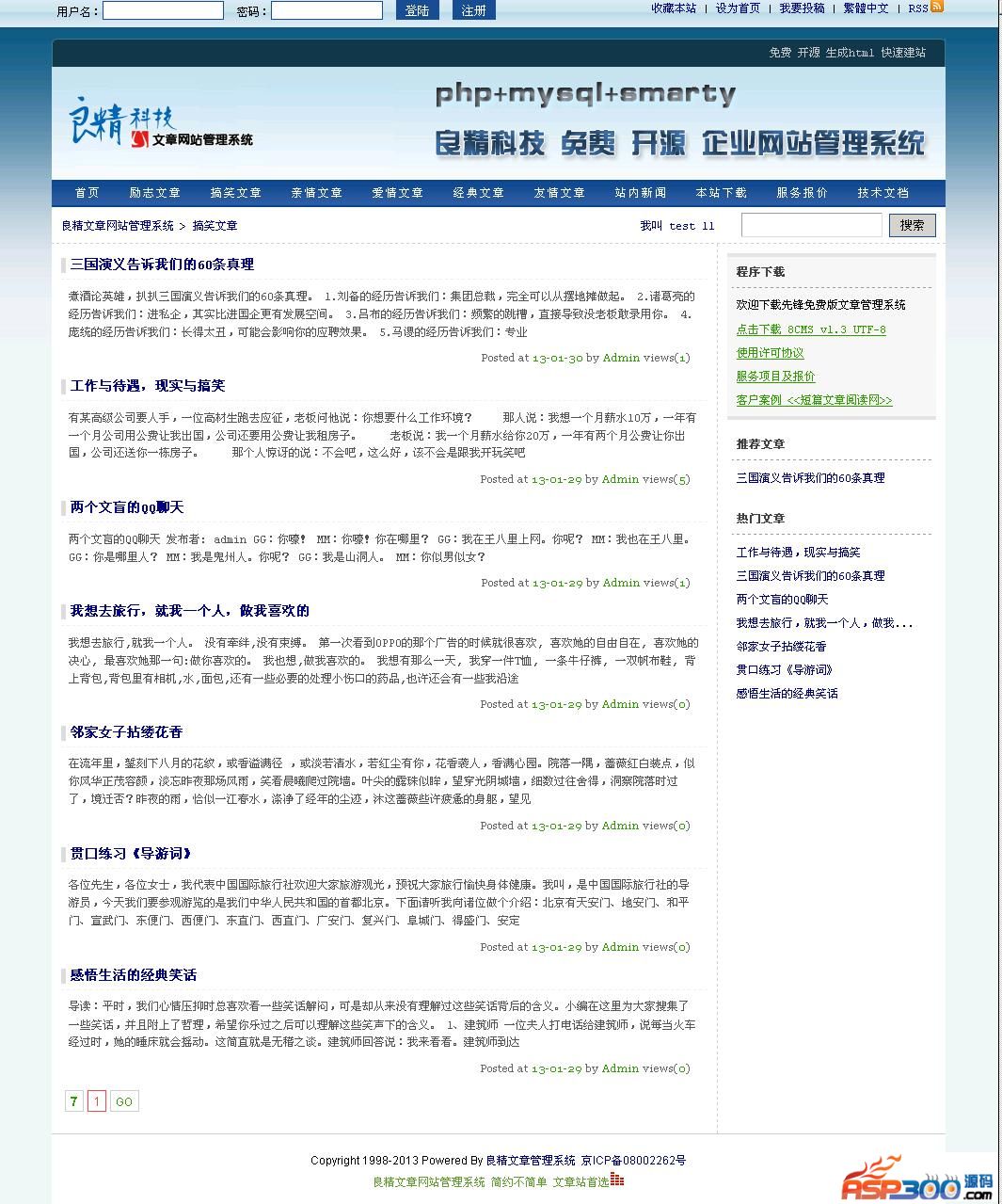 2) 显示文章内容以及添加/修改栏目或文章时出现数据库不能更新的错误提示?