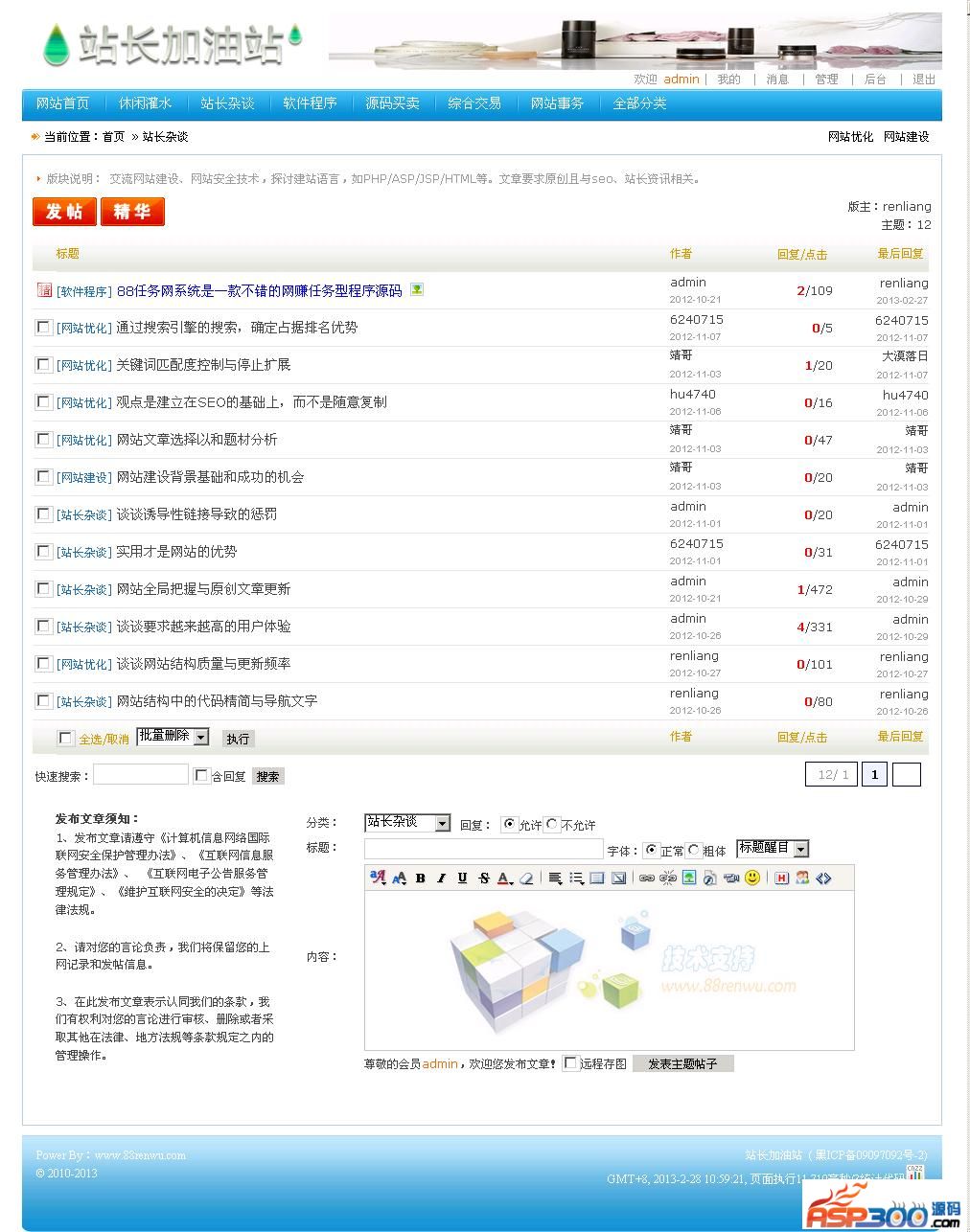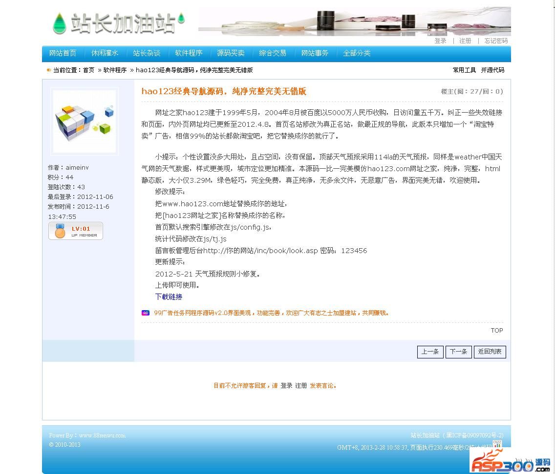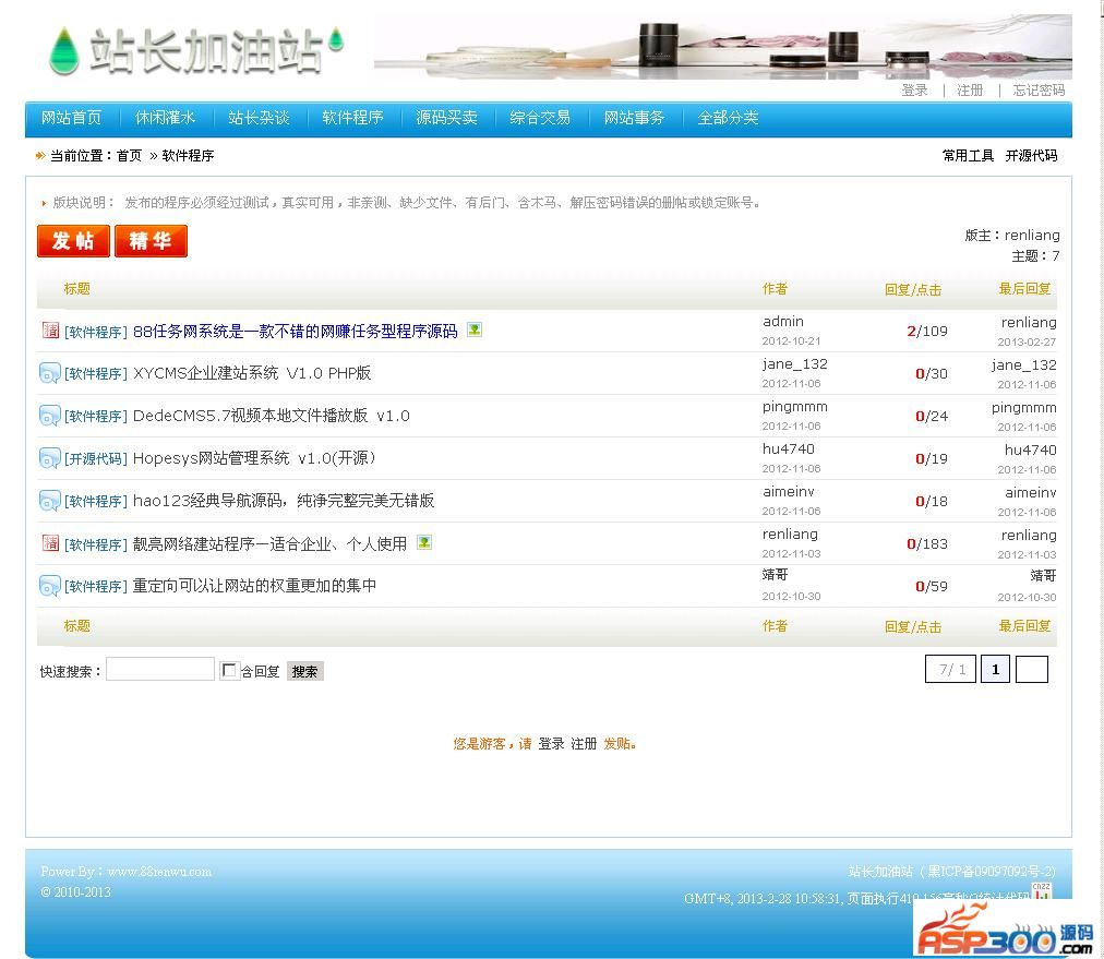 站长加油站程序是一款短小精悍的ASP信息资讯发布展示系统,他集成了留言本的便捷,CMS的实用,论坛的交互性于一体,采用Css+Div构架,使用了大量的数据缓存和高效的分页类,提高了页面访问速度和用户体验。站长加油站程序免费版仅供学习、参考、交流和研究使用,有部分功能限制,喜欢本程序请索取完整版并获得永久技术支持。