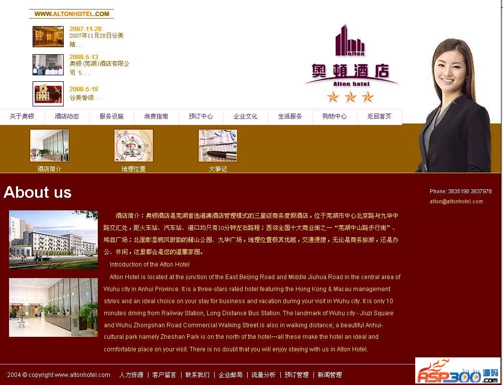 三星级商务度假酒店网站源码
