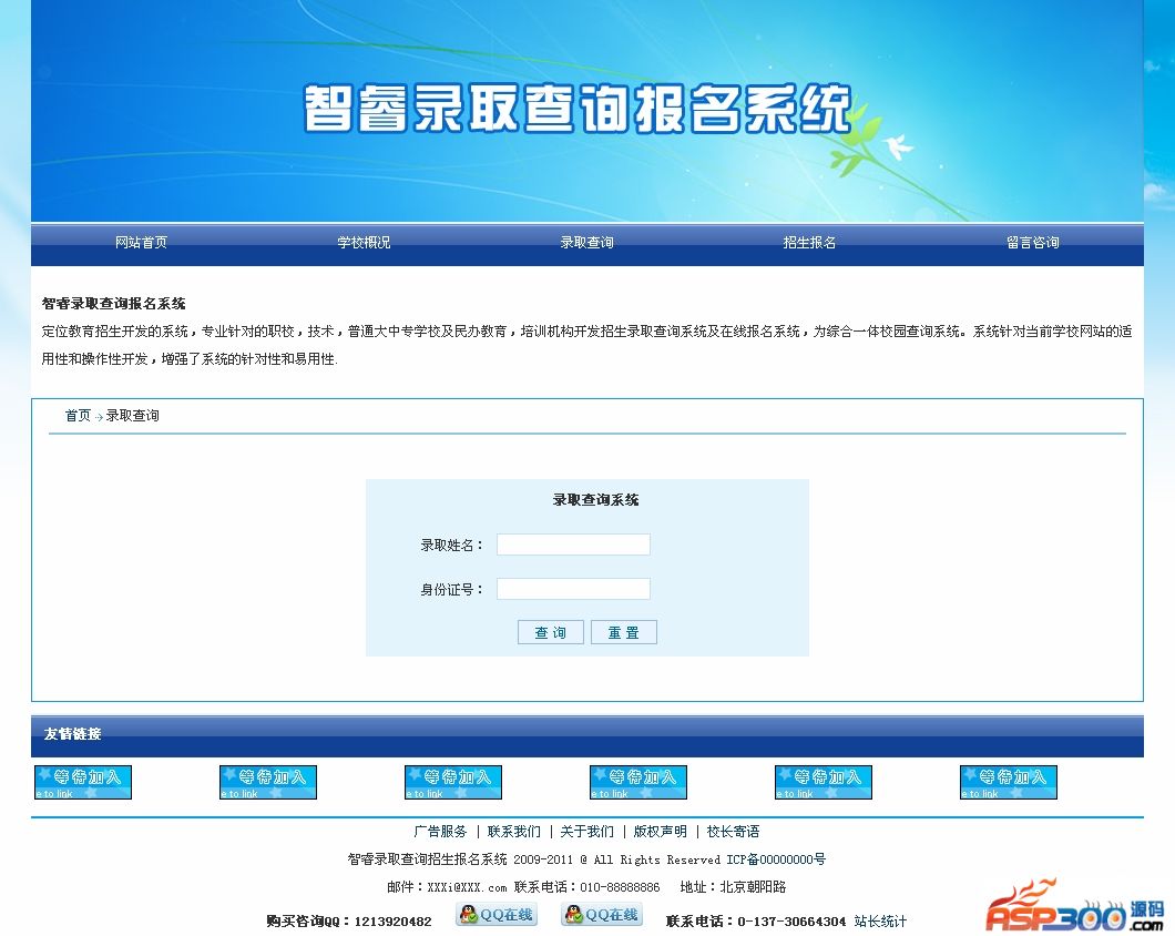 智睿录取查询报名系统定位教育招生开发的系统,专业针对的职校,技术,普通大中专学校及民办教育,培训机构开发招生录取查询系统及在线报名系统,为综合一体校园查询系统。系统针对当前学校网站的适用性和操作性开发,增强了系统的针对性和易用性。