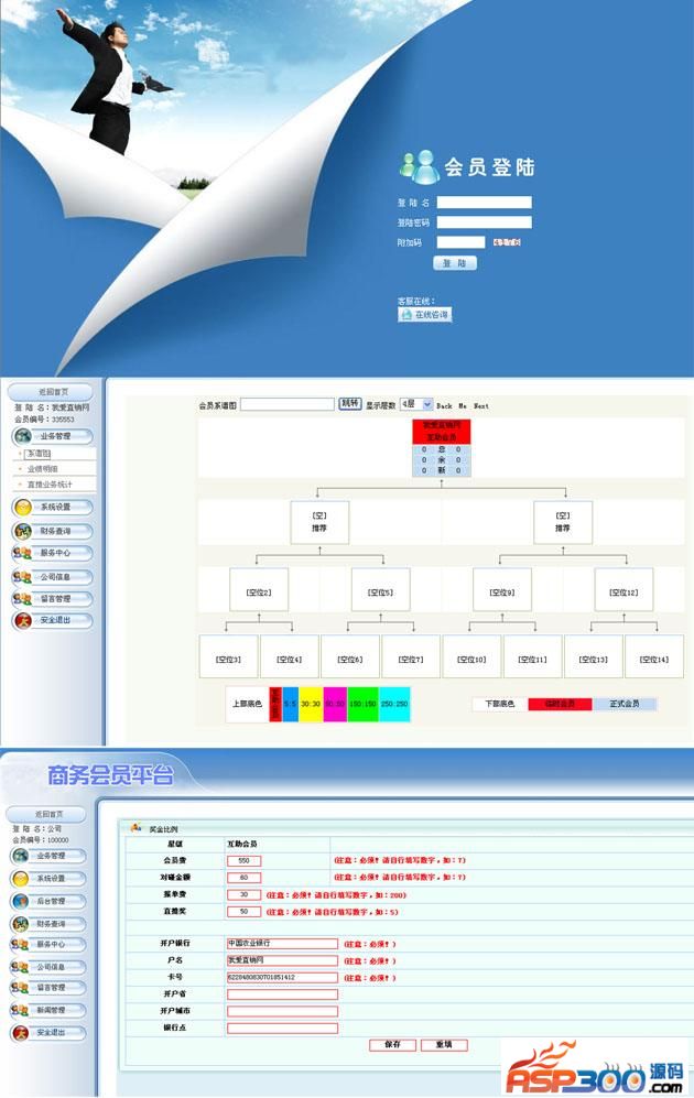 本套直销软件采用:ASP+ACCESS开发,是一套双轨互助消费直销软件,前台简单易用