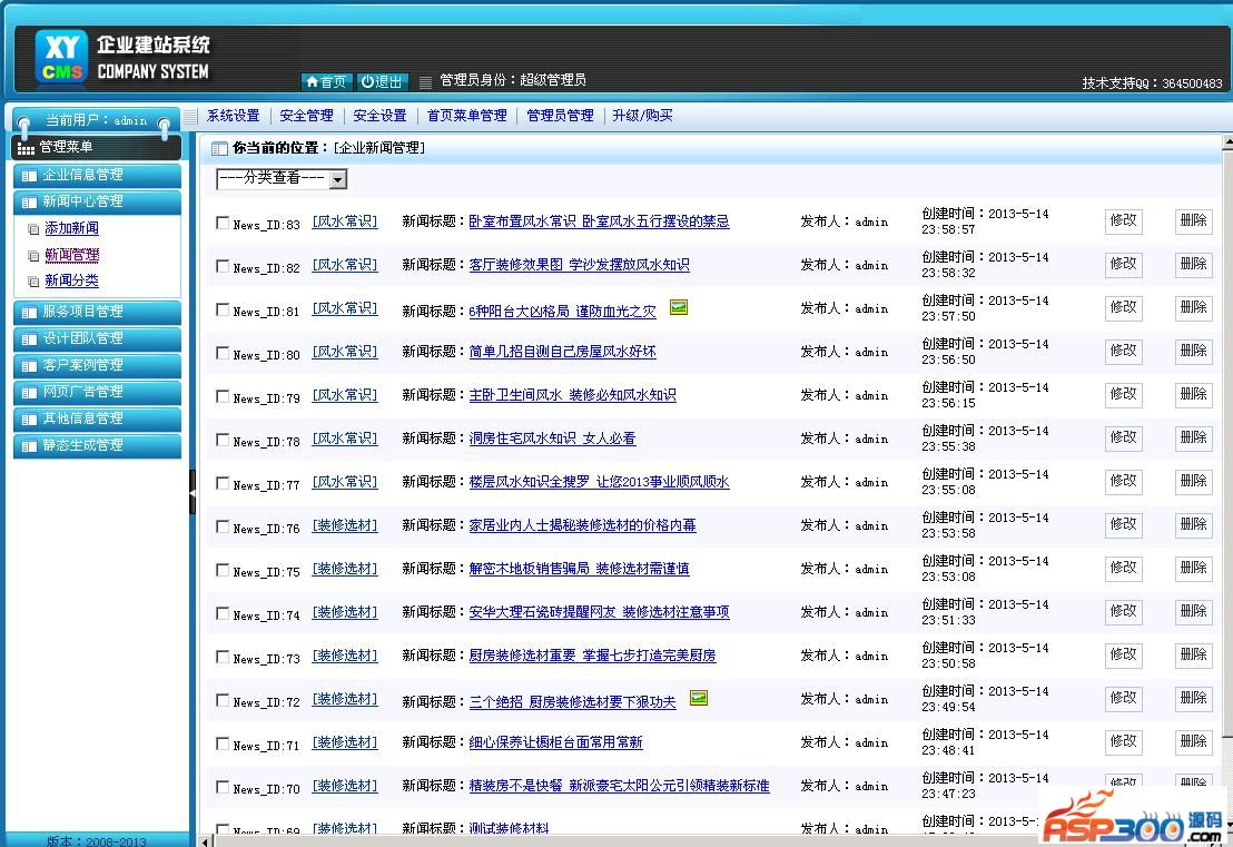 新闻中心管理:管理新闻信息内容,管理相关分类,添加或者删除