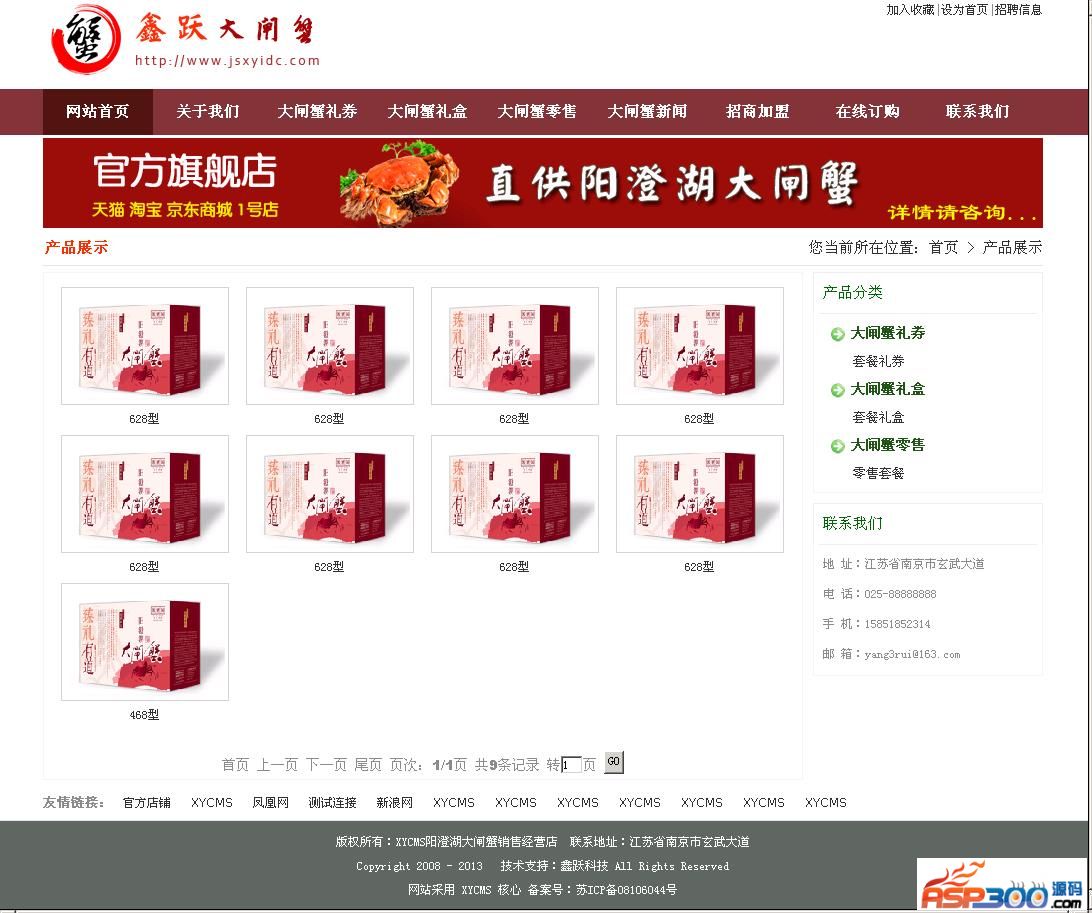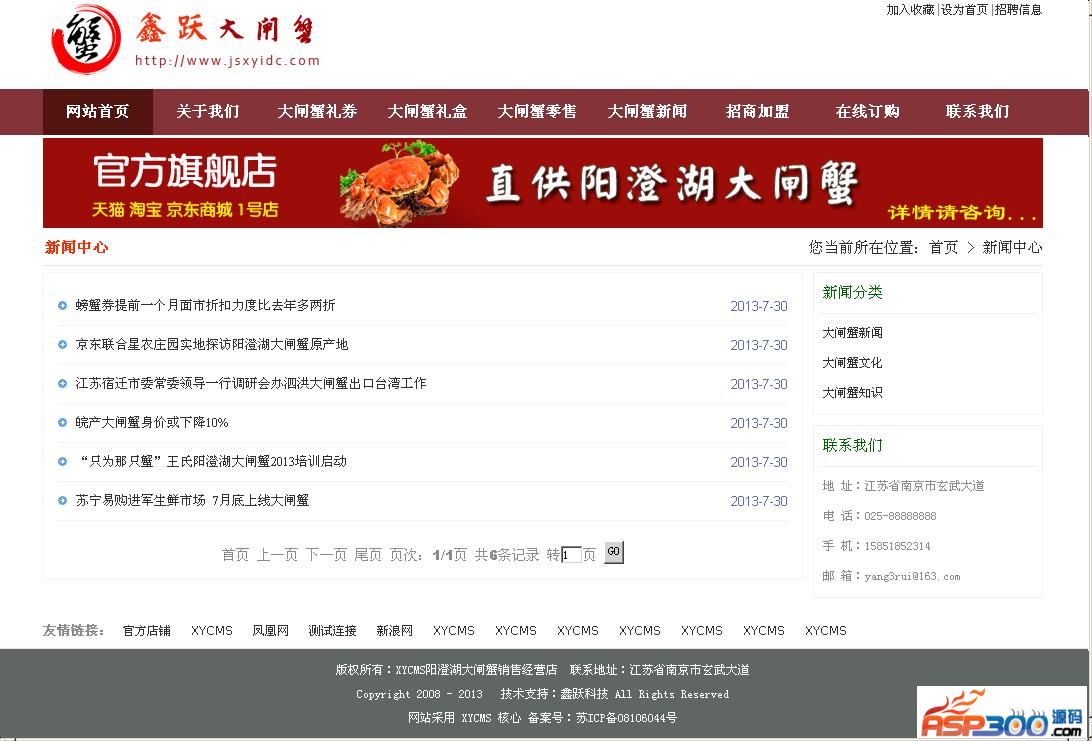 XYCMS大闸蟹销售经营店源码是以asp+access进行开发的企业网站源码。