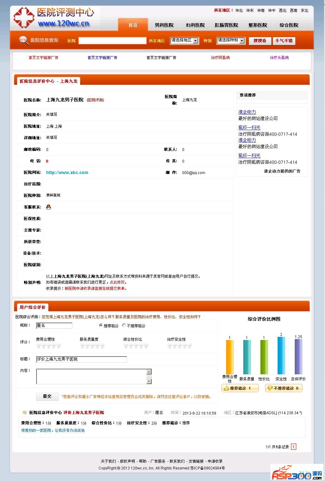 医院评测网是对医院的好坏收费合理性以及医院的信息展示,可以说是医院信息的点评也可以说是医院导航网站。网站整合了点评防刷,限制Ip提交次数和时间间隔,所有医院信息都来源网友提交后台无法操作网站安装:上传至网站根目录,如果不是根目录需要 改配置根目录下Conn.asp中db="/data/"&DataName改为db="data/"&DataName网站管理:url/admin 用户名admin 密码admin