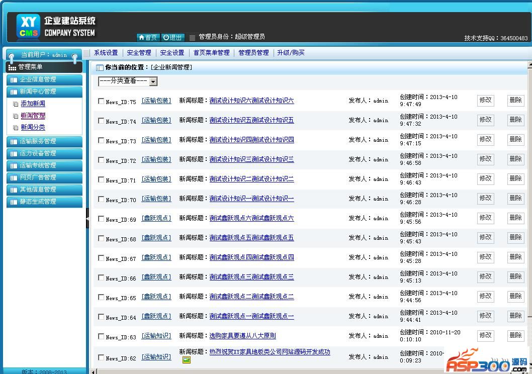 新闻中心管理:管理新闻信息内容,管理相关分类,添加或者删除