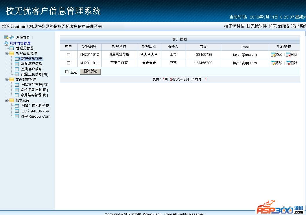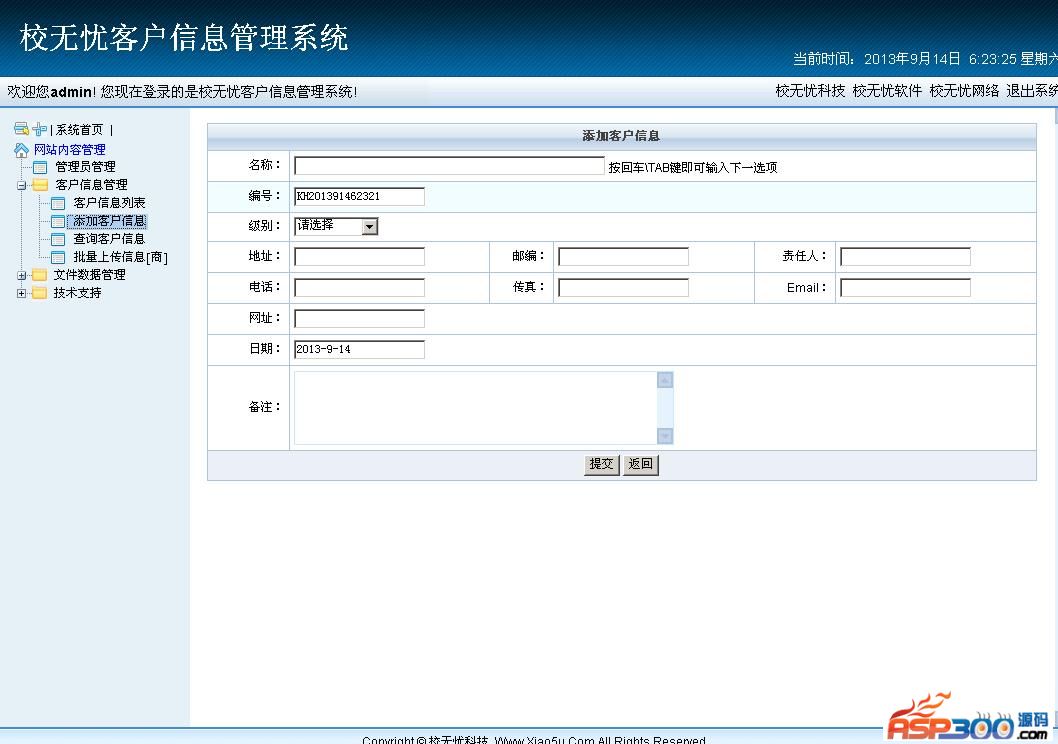 校无忧客户信息管理系统是一款简单的客户信息管理系统,以客户为中心,把科学的管理与信息技术结合起来,实现客户信息的统一管理。系统适用于企业、公司、教育培训机构、企事业单位等。