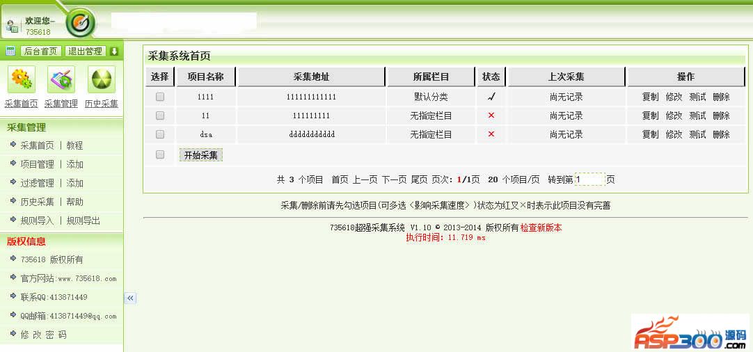 735618超强采集系统,史上最简单最强的采集系统。在网页上输入http://127.0.0.1/735618>帐号:735618 密码:123456>基本设置>项目名称:这个看一眼就明白的名称,如:美女图片>网站名称:要采集的图片是哪个网站的。>网站网址:该网站的网址。>项目备注:该项目的其它要记录的信息,比如--美女图片好好哦,以后每天都要采它