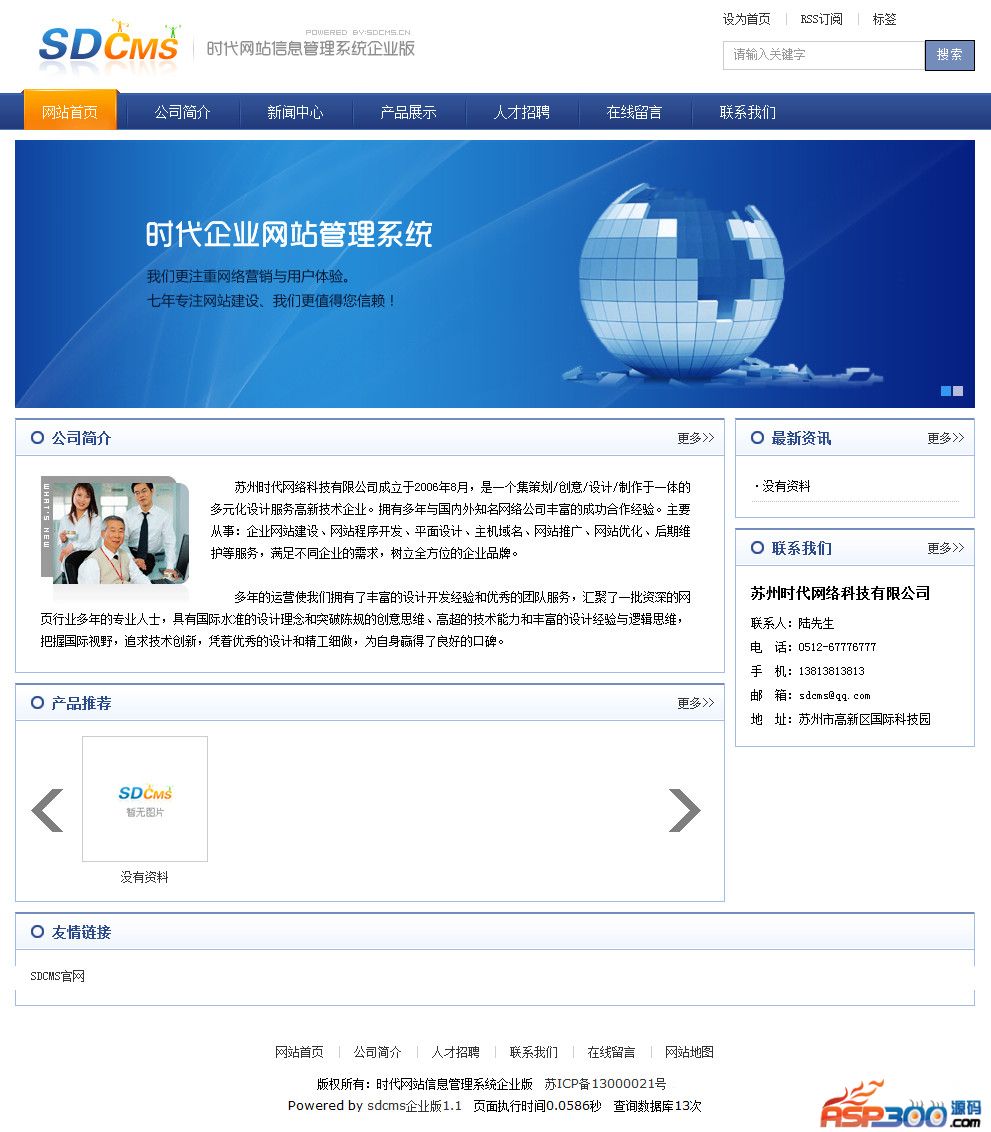 SDCMS企业版主要包含:文章、单图、商品、招聘、下载、单页、外链、定时发布、手机版、自定义字段、自定义表单等模块,系统内置评论,留言,心情,搜索,标签,7年企业网站建设经验为您精心打造,是您快速建立中小营销型企业网站的良好选择。