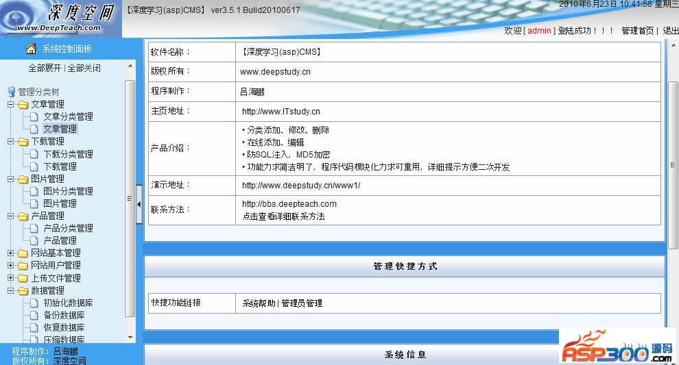 深度学习(asp)CMS系统 3.5.1 更新说明: