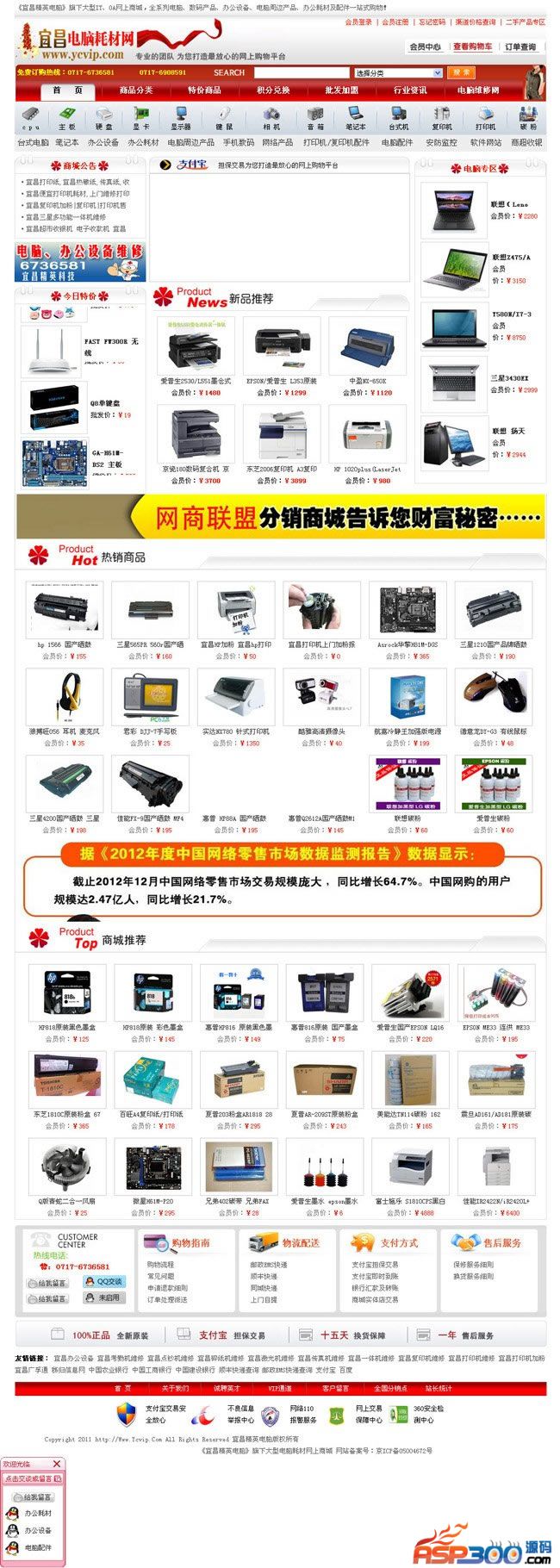 宜昌电脑耗材网程序 ASP无漏洞,完整的源适合在电脑城,做电脑,电脑耗材,办公设备,数据产品,电子产品等商家在线销售及展示。