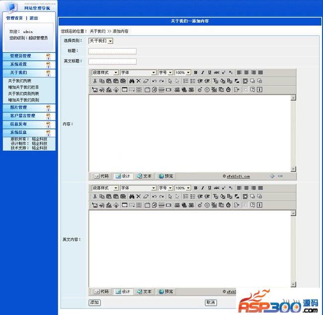 ASP塑胶制品有限公司网站源码(中英双语)简介,程序较为简洁。但功能齐全。适合一般企业建站使用。 后台地址:admin 用户名和密码:admin 下载地址 下载地址已转移到新版网站,请点击左上角-首页,在新版网站搜索此套源码的标题进行下载。