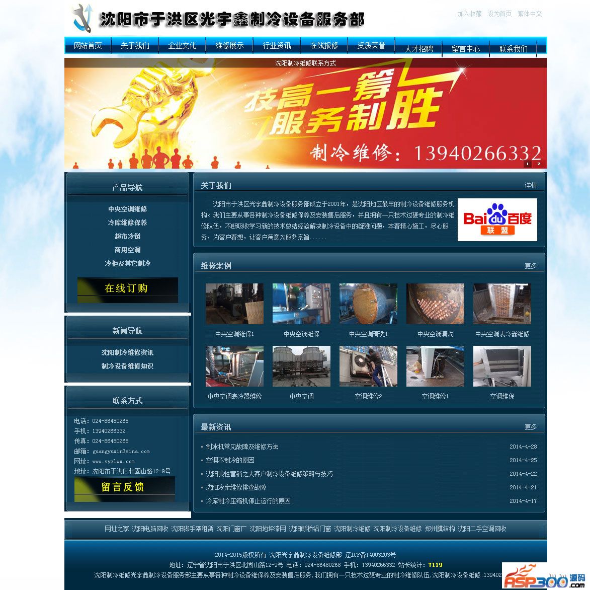 沈阳制冷设备维修网站由沈阳世纪兴网络科技公司提供电子商务方案,该网站适合维修行业使用,欢迎在线下载,请给本站做个友情链接,谢谢尊重我们的劳动成果! 下载地址 下载地址已转移到新版网站,请点击左上角-首页,在新版网站搜索此套源码的标题进行下载。