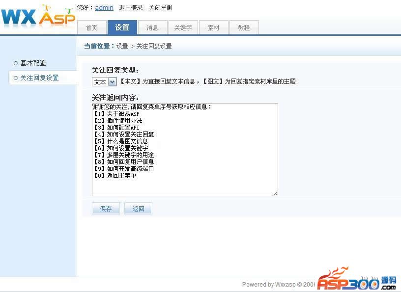 使用办法:1、请打开Config.asp2、可设置虚拟目录 webroot="/"3、本系统无需前台,直接微信接口4、后台登陆地址 /admin5、后台帐号密码 admin:admin