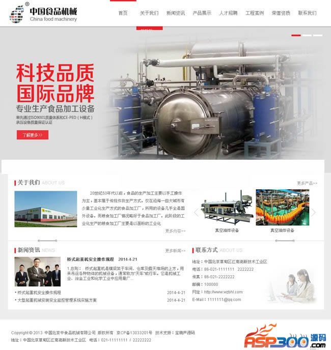 食品机械企业网站源码功能描述: