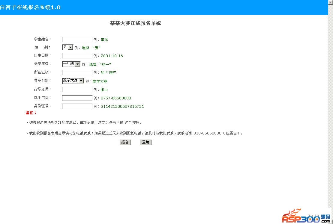 为了满足某些学校或者辅导机构等网上在线报名的需求,特用asp利用周末时间写成的小程序。