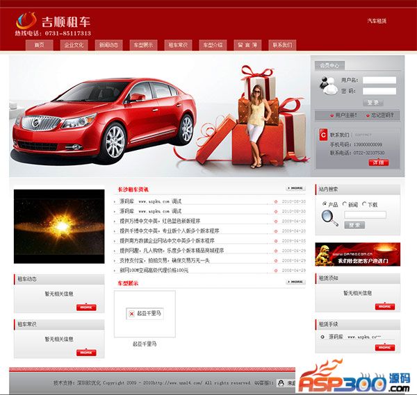 ASP中英双语租车公司整站源码下载,内核为千博系统。程序是ASP+ACCESS制作,中英双语。对原模板做了一些改动!没有功能限制。