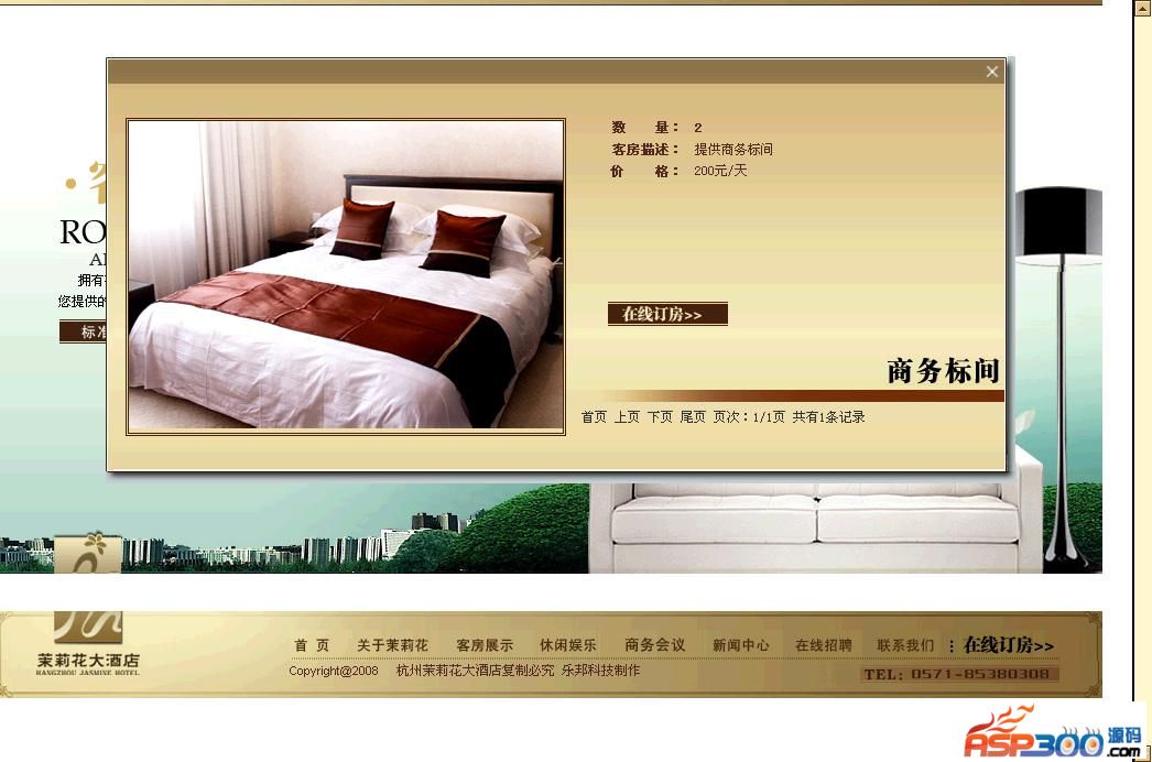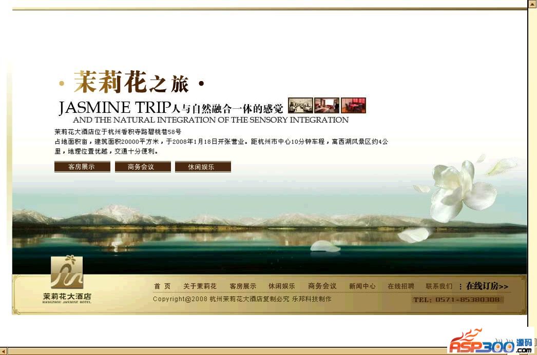 源码介绍:这个源码是杭州某个酒店的网站,用flash制作的,界面美观漂亮,是个不错的asp源码