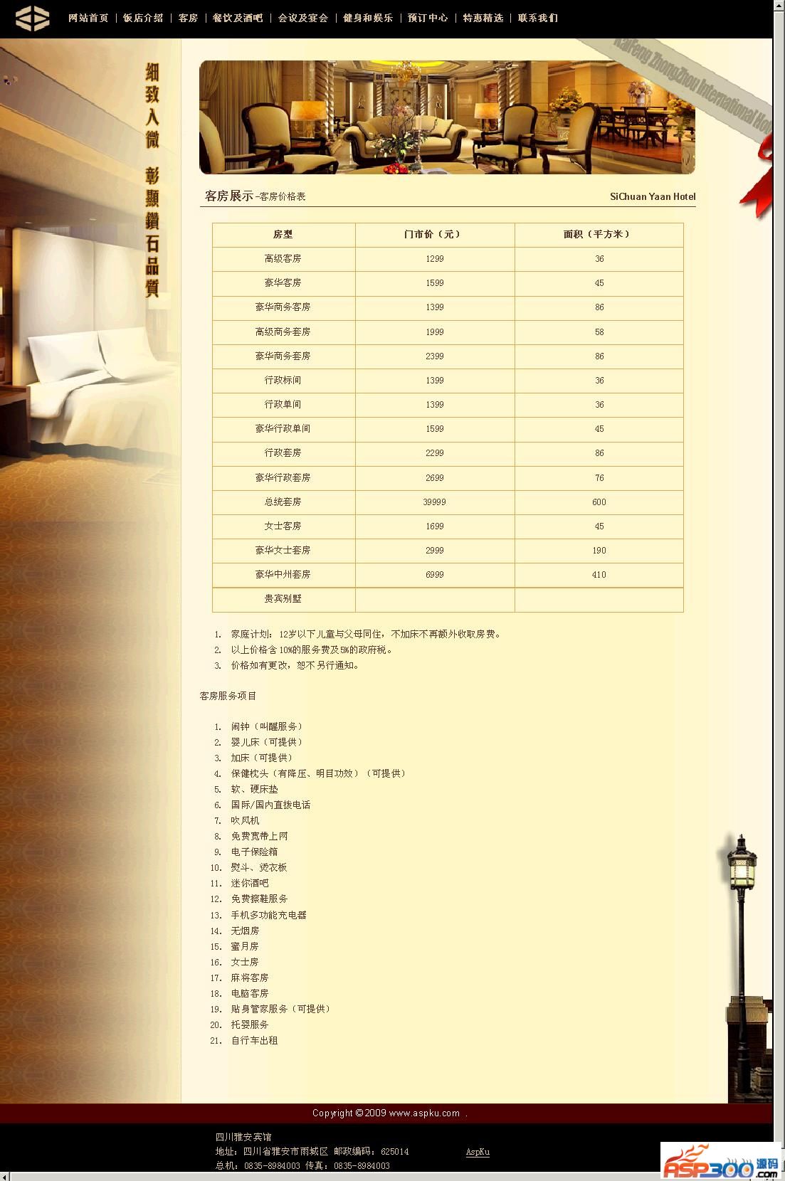 五星级宾馆网站整站源码,美工极品!包含在线订房、客房展示、宾馆介绍等各种功能。后台功能完整! 后台目录:admin/index.asp 登陆用户名及密码:admin 下载地址 下载地址已转移到新版网站,请点击左上角-首页,在新版网站搜索此套源码的标题进行下载。
