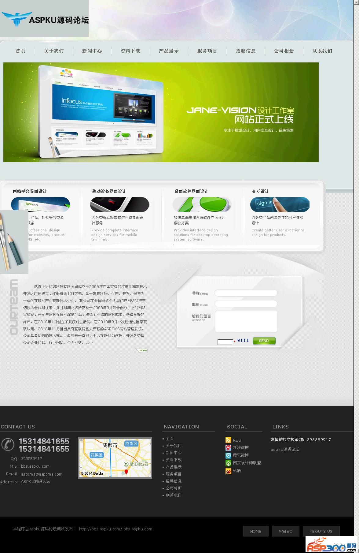 超酷网页设计公司网站源码一款基于ASPCMS制作的漂亮大气设计公司网站源码,前台带订单留言系统!适用于:网络公司、设计公司、LOGO设计等网站使用。