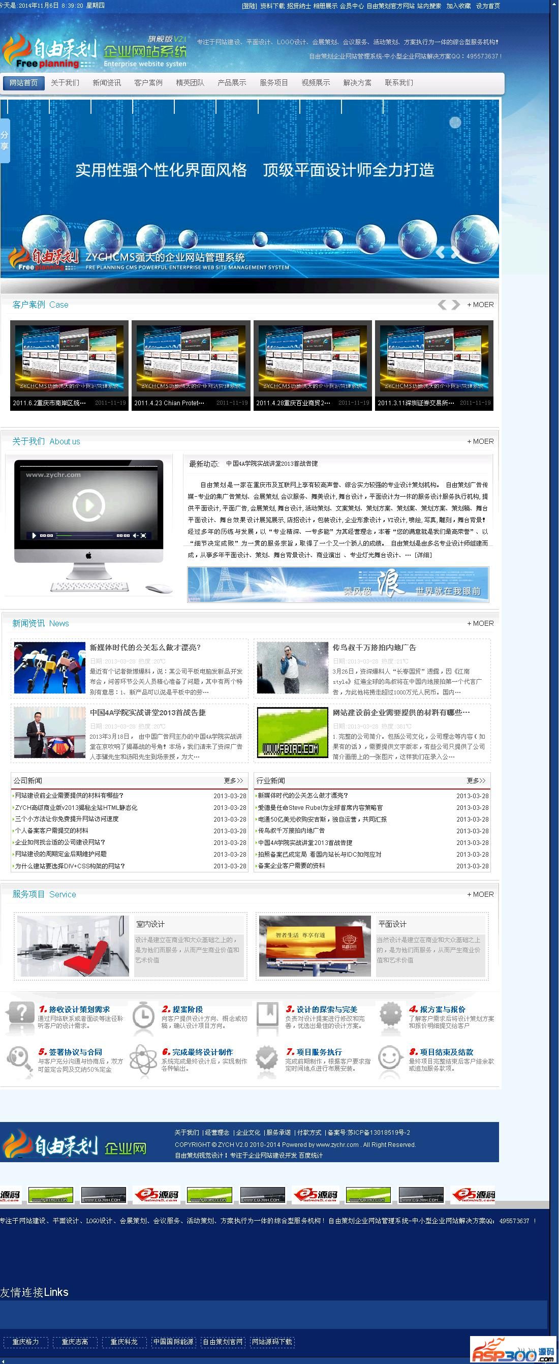ZYCH企业网站管理系统-旗舰版程序为智能ASP网站管理程序,是基于自由策划企业网站管理系统V2012.12版之后的升级版,不管是在程序的内部结构还是界面风格及CSS上都做了大量优化及性能提升,特别是在ASP生成HTML上做了大量的改变,为用户体验提高一个台阶,本程序适合中小企业自建网站、二次开发使用。本程序具有体积小巧、程序文件结构严谨、界面清爽简单、功能强大、非专业人士使用入门快、中小企业使用投资小等实用特点。 ZYCH企业网站管理系统基本模块有: 新闻模块、产品模块、下载模块、会员模块、视频模块、留言模块、相册模块、服务项目模块、服务流程、在线文档查看管理等。 主要功能如下: 系统设置:对网站全局进行设置。一键更改网站状态、网站头部风格、修改网站标题、设置网站基本资料和网站系统属性等。