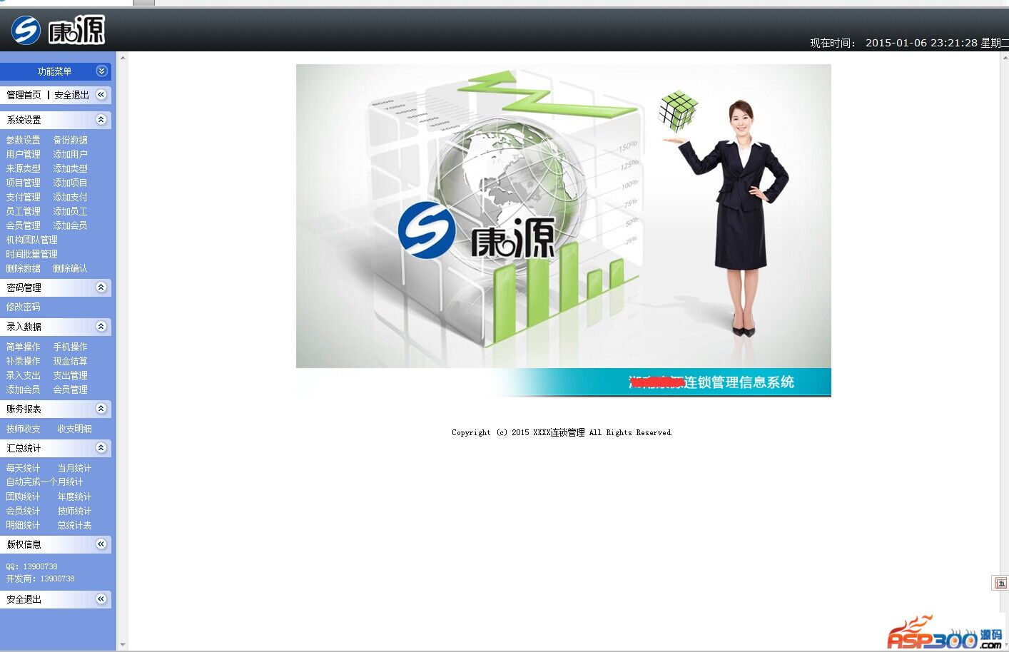 迎使用按摩连锁管理系统ASP通用版,在线测试请将整个程序包上传到空间根目录下,