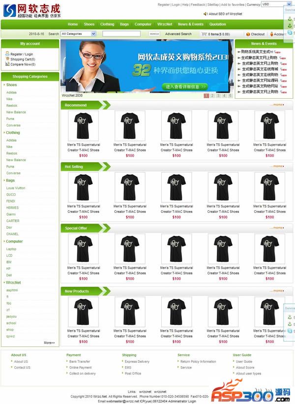本公司开发的英文网店系统功能方面更是十分强大!静态版率先支持了商品二级分类,支持七种在线支付,32套国外购物网站模板,32套的海外风格外贸公司英文网店程序,京东商城网源代码,京东商城网站源程序,京东商城源码,仿京东商城免费模板,同时支持Excel批量导入商品、文字或图片水印设置功能、商品优惠券及免运费设置的高级功能于一体,同时支持邮件订单通知与群发、完美整合BBS程序以及图片自动清除功能等等。