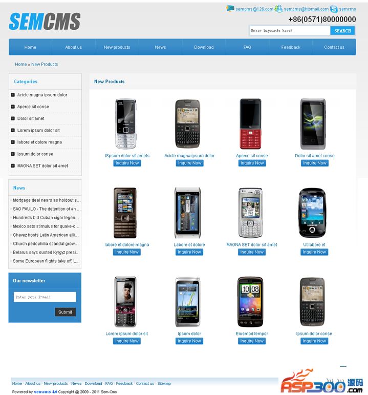 SemCms非常适合在外贸企业,电子商务互联网应用上使用,2009年12月首次发布以来,SemCms依靠出色的用户体验和领先的技术不断扩大外贸场占有率,目前在国内已经成为最受欢迎的英文外贸网站之一。