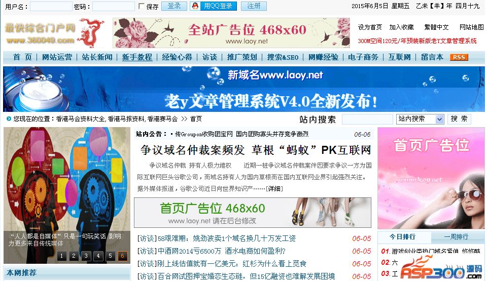 360049文章管理系统,采用Asp+Access开发,适应中小新闻文章型网站及个人网站需求,整个网站采用Div+Css布局,IE6、IE7、IE8、Firefox、Chrome下测试无误.