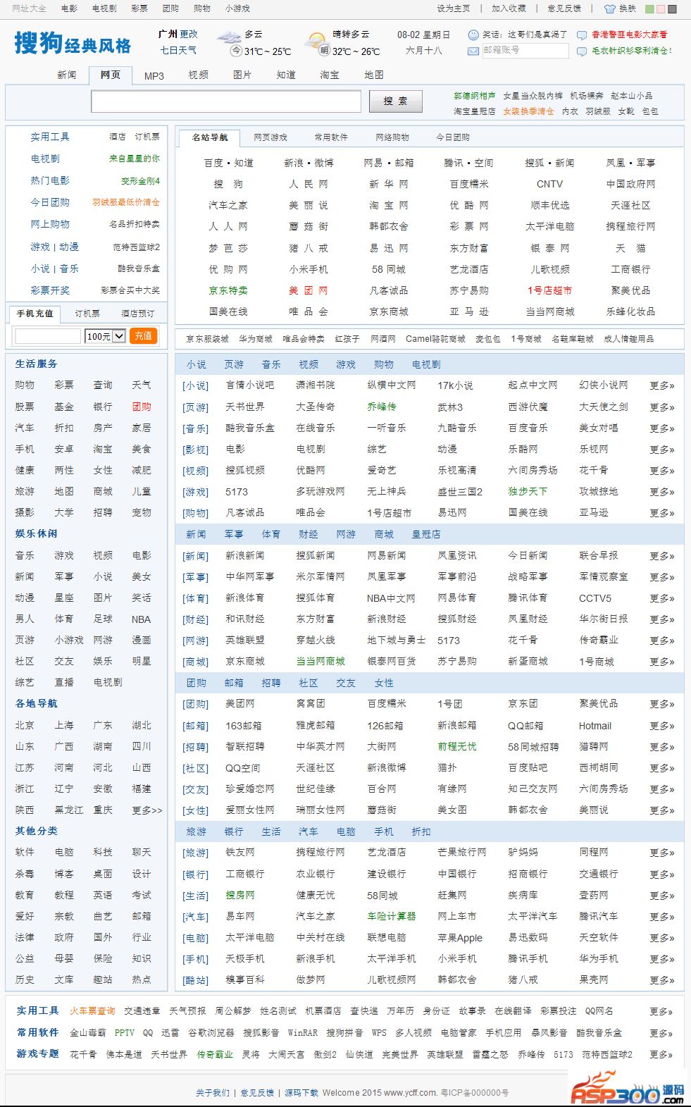 搜狗经典的网址导航蓝色风格,端正大方,集合常用功能,日期时间、天气预报、邮箱登陆、搜索引擎、实用工具、小游戏等;完全免费。无需维护、零风险、支持任何网页空间、上传即可使用。