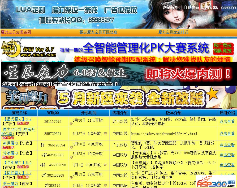 >魔力宝贝游戏发布网是一套游戏实时发布程序,游戏业主可以匿名发布自己的私服,随着功能的完善,目前系统加入了私服推荐、家族、今日新开游戏