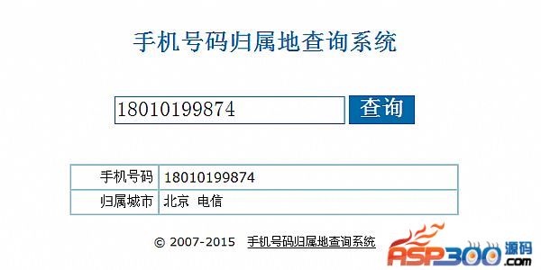 一款基于asp+txt手机号码归属地查询系统