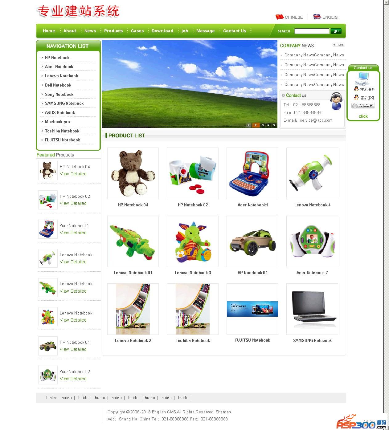 4、独有精心设计的前台产品展示模块,可方便地在后台进行开启、关闭子功能;后台采用产品属性管理接口,使产品添加、管理更加智能化;