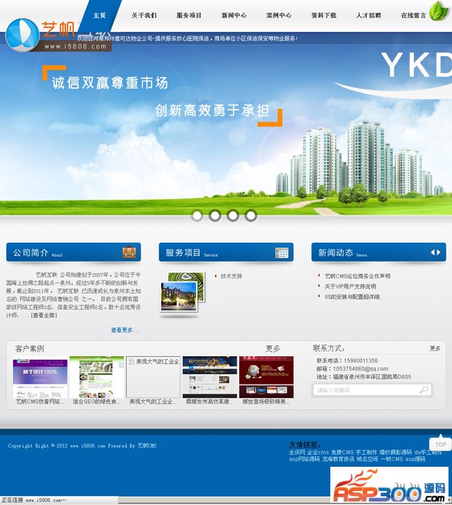 艺帆物业保洁公司网站模板CMS企业版功能:单页设置 单页分类设置 新闻 产品 下载 在线招聘 在线留言 会员系统 在线下单 幻灯管理 友情链接管理 数据库备份