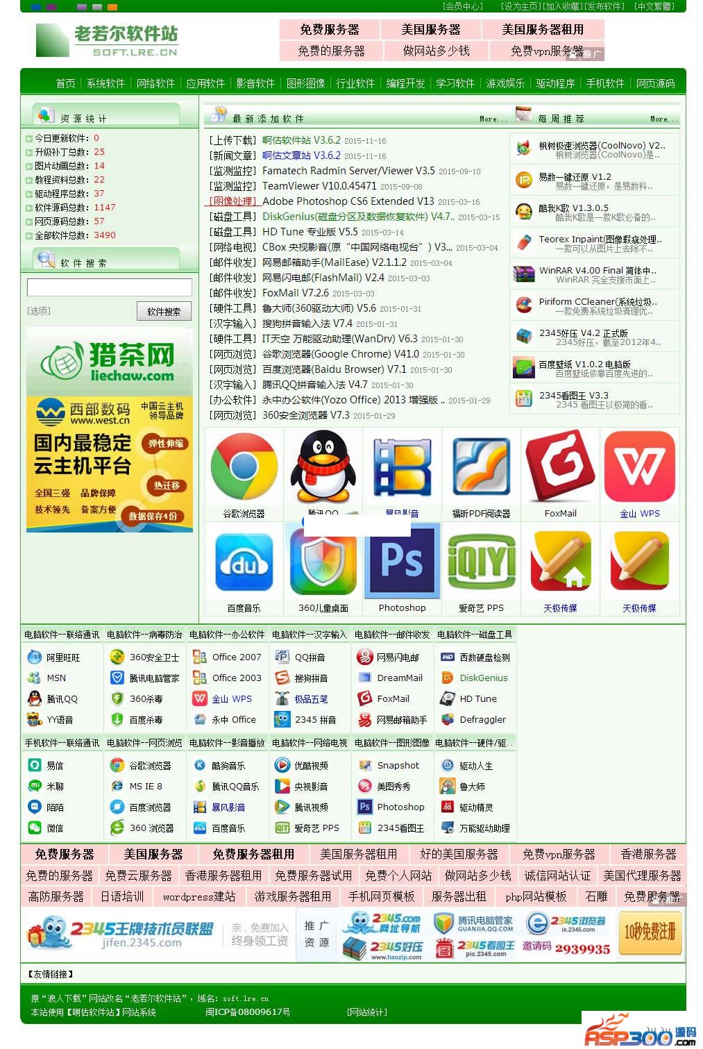 网站软件资源管理:添加/修改软件/下载链接,批量修改软件名称的字体/字号/颜色、软件类别/分类、下载站点、软件状态、版块显示、会员编号、整理日期、清除下载次数、删除软件,添加软件时在同一类别及分类下会检测重复性。对于不同的管理账号可以分别设置允许添加的软件类别/分类,可以设置是否允许修改其他的管理账号添加的软件。