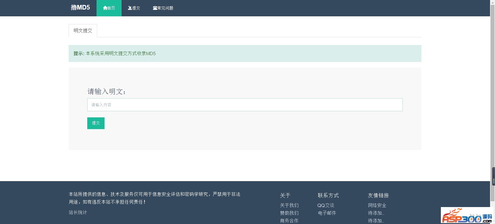 欢迎各位一起交流,本人准备开发第二版撸MD5网站系统