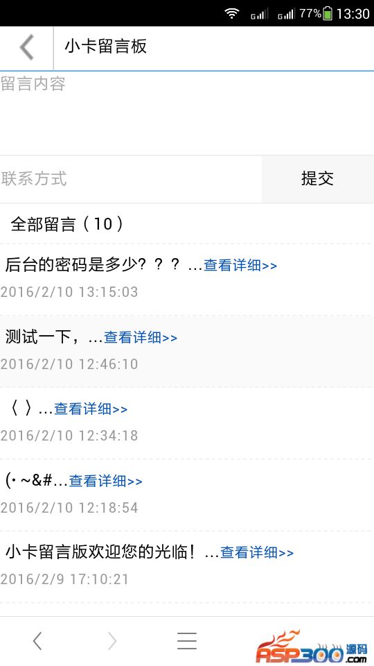 5)留言成功后显示内容可以自由更改(支持HTML)