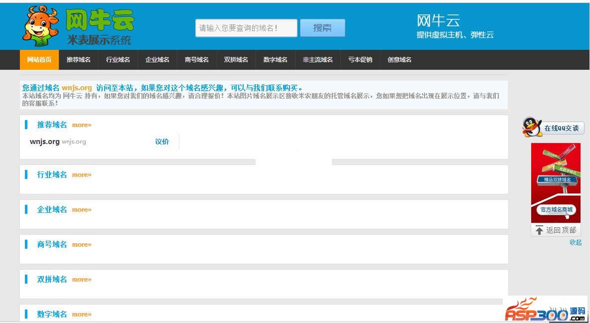 WnyCms米表程序ASP版V2.0,采用ASP开发,后台自由添加、删减、分类对域名进行操作,可快速让域名投资爱好者建立一个独立的专业米表。