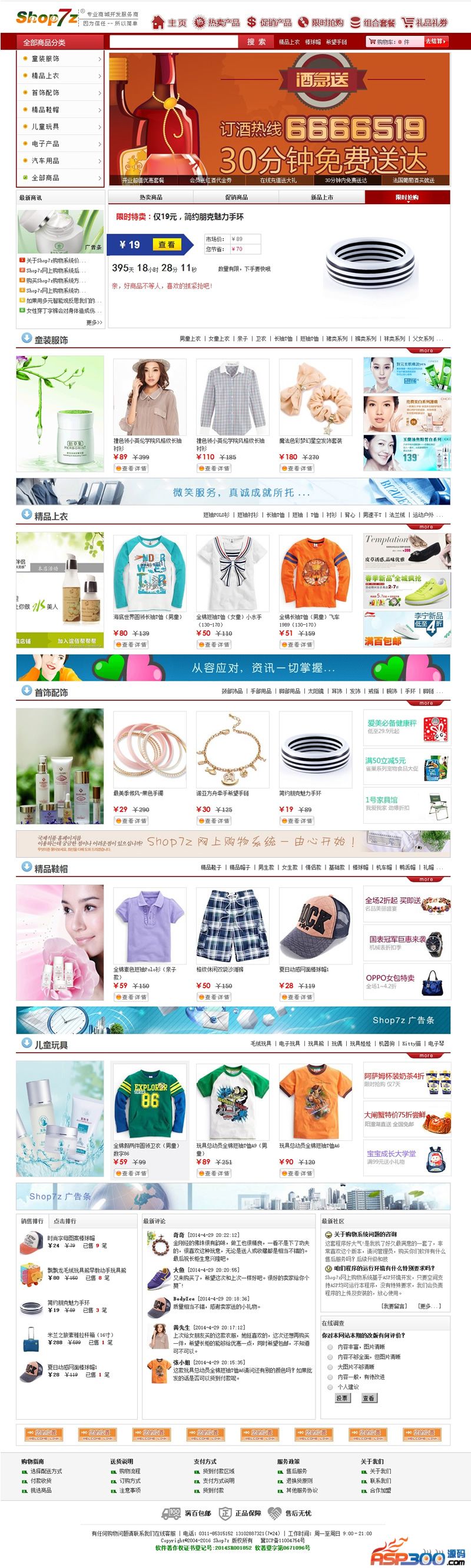 Shop7z网上购物系统旗舰版集众家之所长,大气超美观页面+手机版+APP+商品组合套餐+限时抢购秒杀+图片批量上传+淘宝数据包导入+弹出式分类菜单+不同规格不同价格+新订单邮件通知+销售报表打印与Excel输出+物流跟踪打印查询+会员积分及优惠券+邮件群发+图片在线管理+销售统计报表+五种价格体系+礼品礼券等等等。