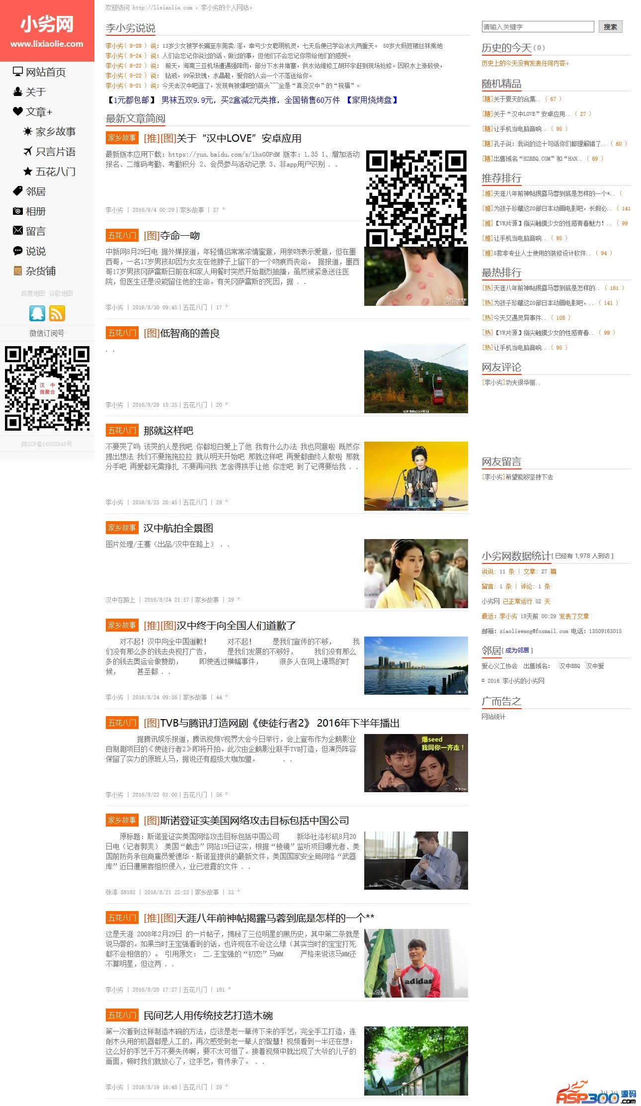 小劣博客系统是一个以asp+access进行开发的博客管理系统,可以用作笑话网站等文章网站进行使用。一、功能1、关于(单页)2、文章(2级分类)3、邻居(连接,评论用户的连接也可以在其中显示;又分首页和内页的连接)4、相册5、评论、留言(如果使用社会化评论,在广告三种修改代码,并在inc/conn.asp中修改pinglunkaiguan)6、说说二、自适应这个没做多少。就是当分辨率宽度低于1024切换简单显示(隐藏侧边栏)。如果手机登录则直接变成简单显示风格。