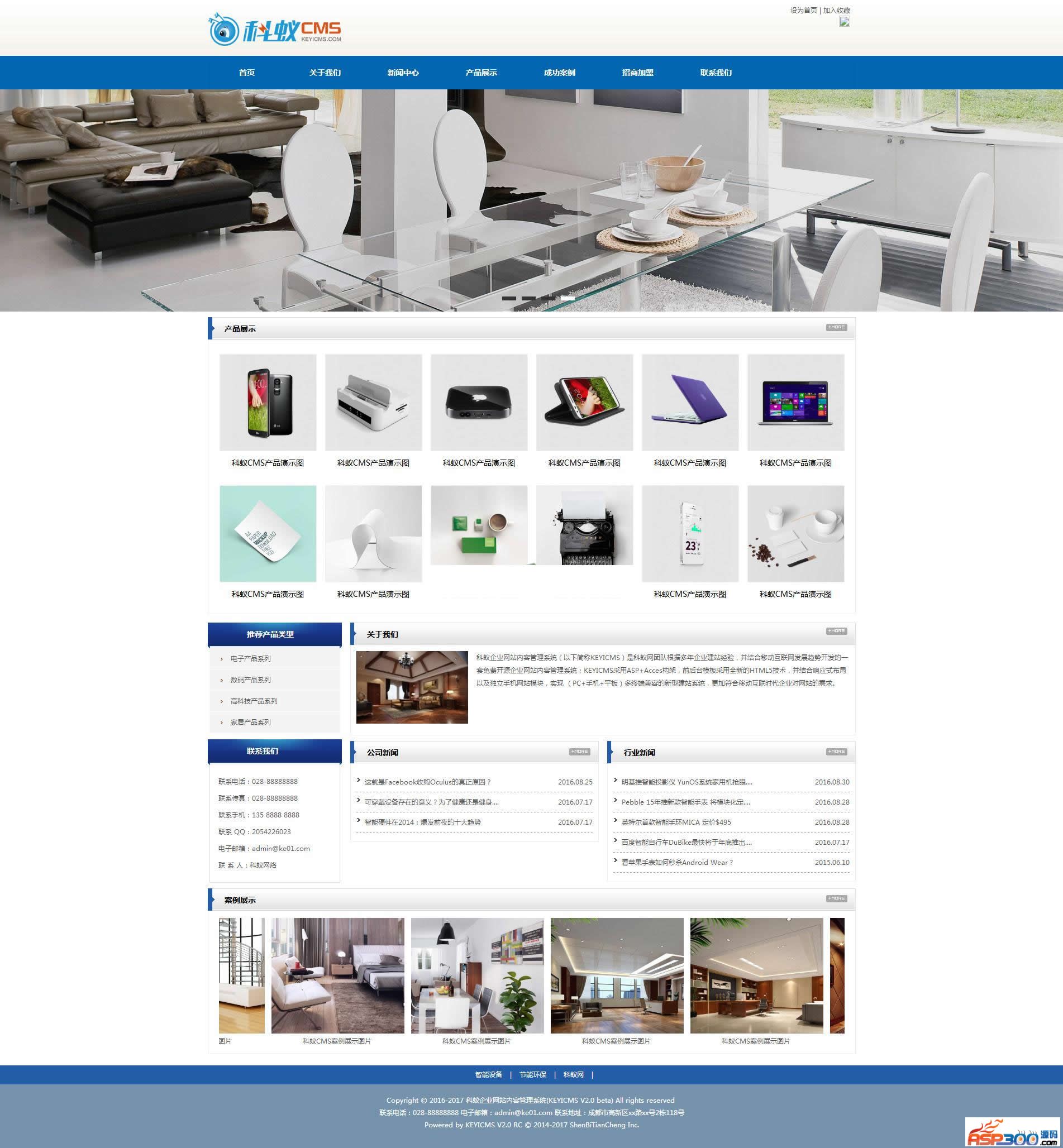 KEYICMS(科蚁企业网站内容管理系统)简称科蚁CMS,是科蚁网团队根据多年企业建站经验,并结合移动互联网发展趋势,开发的一套免费开源企业网站内容管理系统;KEYICMS采用ASP+Acces构架,前后台模板采用全新的HTML5技术,并结合响应式布局及独立手机网站功能模块,实现 (PC+手机+平板)多终端兼容。