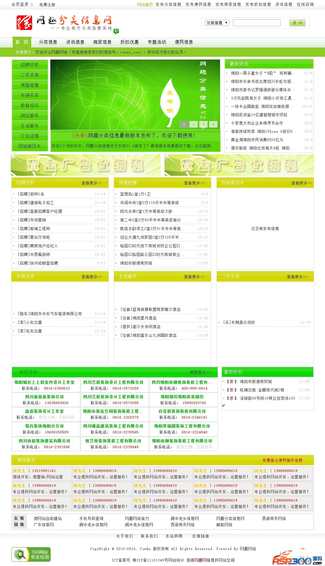 2、网站其他功能:资讯信息、商家管理、便民信息、活动专题、折扣优惠、在线咨询、会员功能;