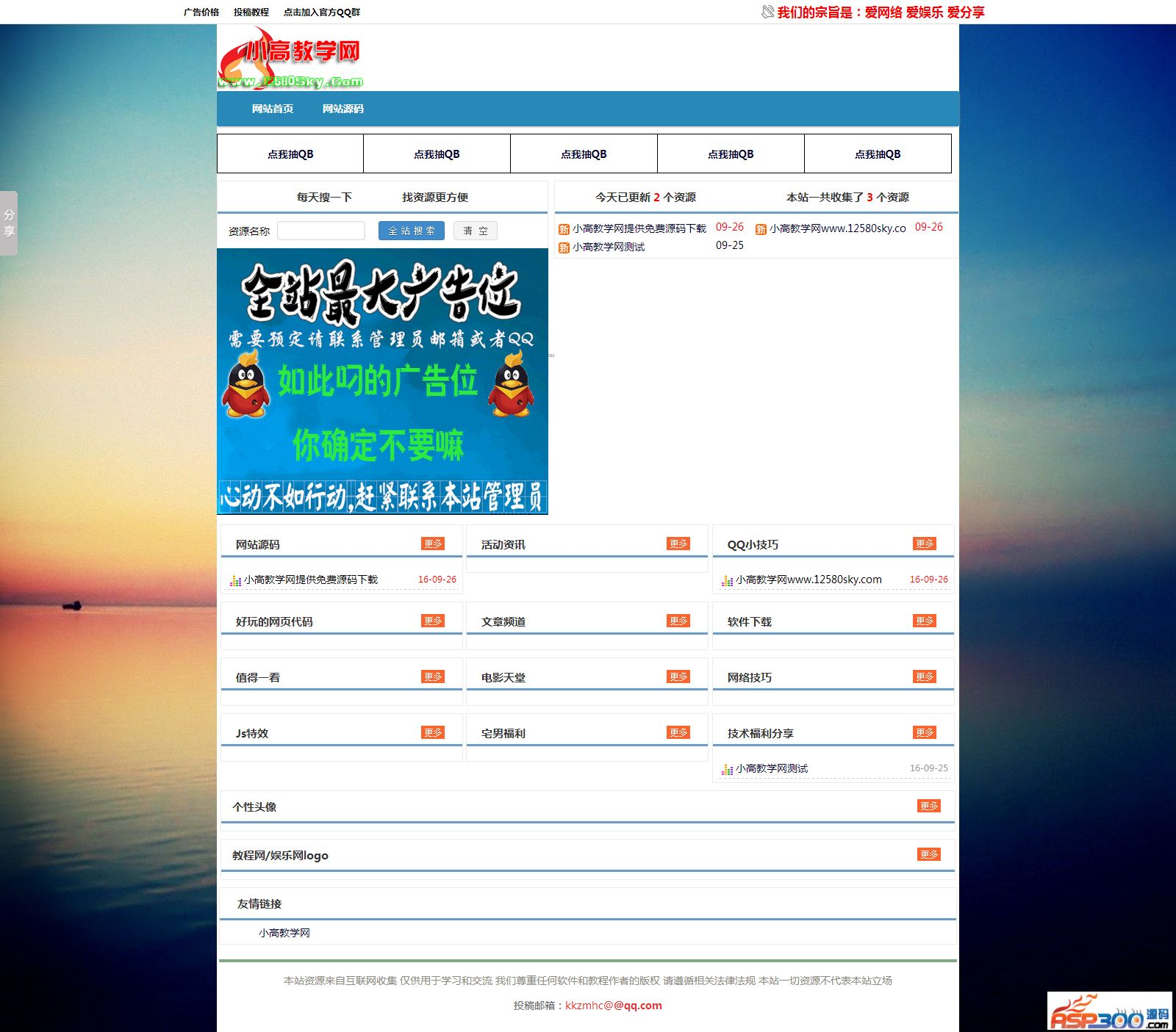 资阁蓝色酷炫QQ娱乐网或QQ资源网源码
