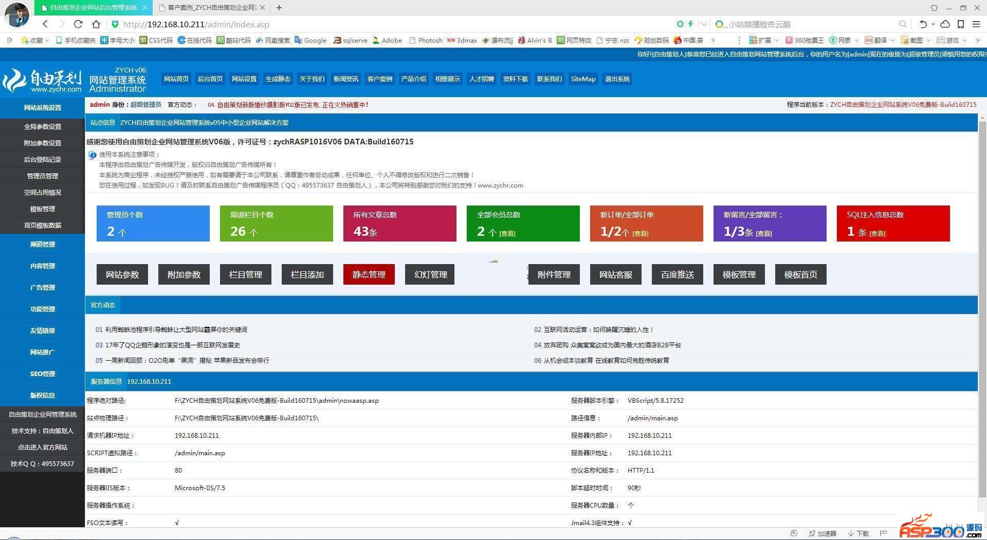 ZYCH自由策划企业网站管理系统是一个智能ASP网站管理程序,是基于自由策划企业网站系列的升级版,结合以往版本的功能优势,解决了频道模板不能自由添加删减的问题,系统开发代码编写工整,方便读懂,系统采用程序模板分离式开发。方便制作模板后台模板切换,模板采用动态编写,此模板方式写入快,代码编写自由,即能满足直接使用也能满足二次开发。全新的后台界面,不管是在程序的内部结构还是界面风格及CSS上都做了大量优化及性能提升,为用户体验提高一个台阶,本程序适合中小企业自建网站、二次开发使用。本程序具有体积小巧、程序文件结构严谨、界面清爽简单、功能强大、非专业人士使用入门快、中小企业使用投资小等实用特点。