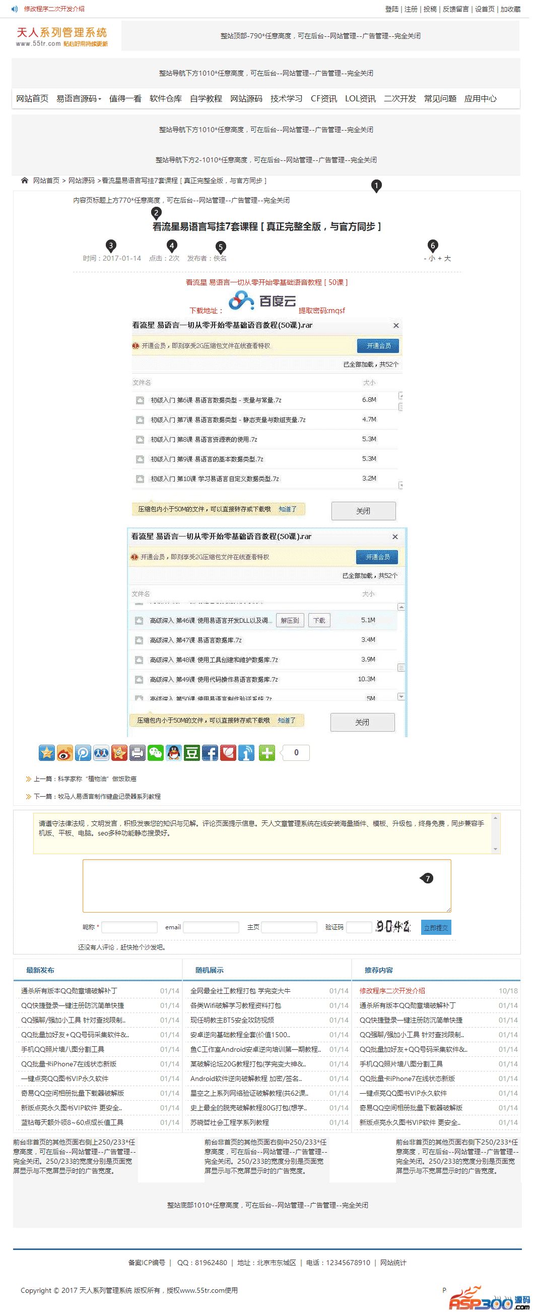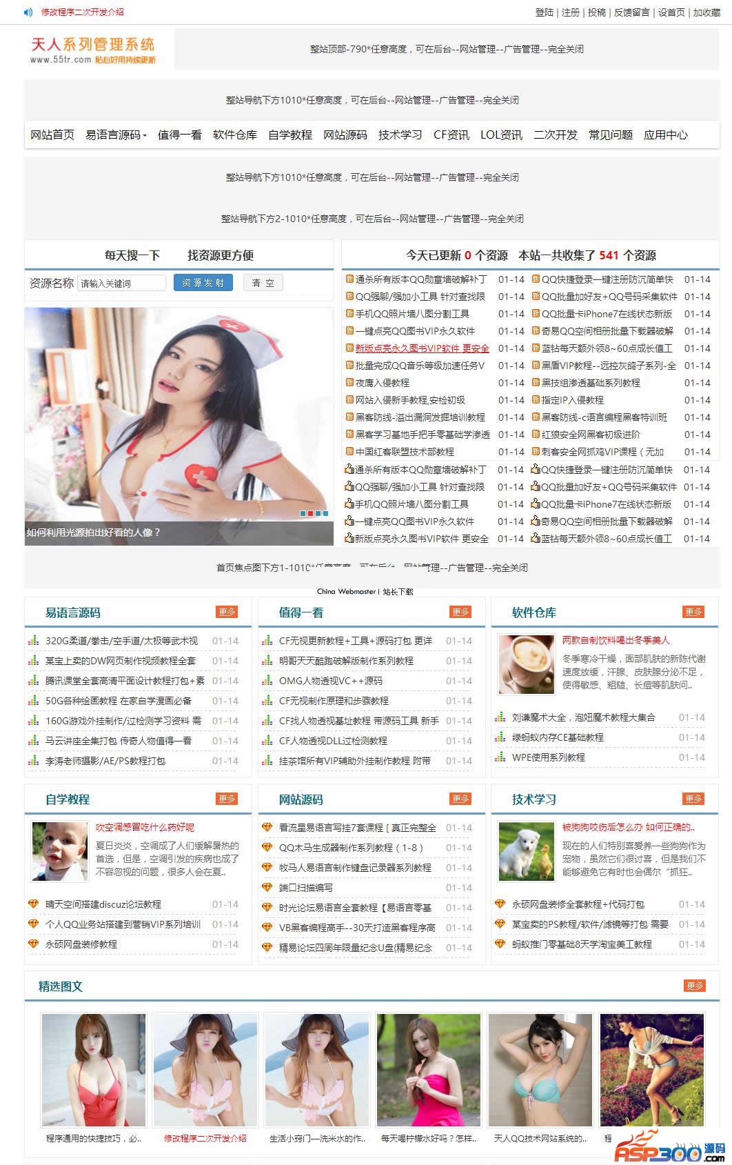 天人QQ技术网站系统(带手机版)程序概况: 天人QQ技术网站系统是asp+access/mssql架构的网站系统,具备电脑版,手机版,平板版无缝自动切换,一个后台同步管理,整站可生成静态有利于搜索引擎收录,文件可用dreamweaver打开可视化修改。兼容所有主流浏览器。 可应用于“小刀娱乐网、QQ教程、易语言教程网、LOL教程、QQ业务、代码分享、教程发布”等等图片文字类型的网站。