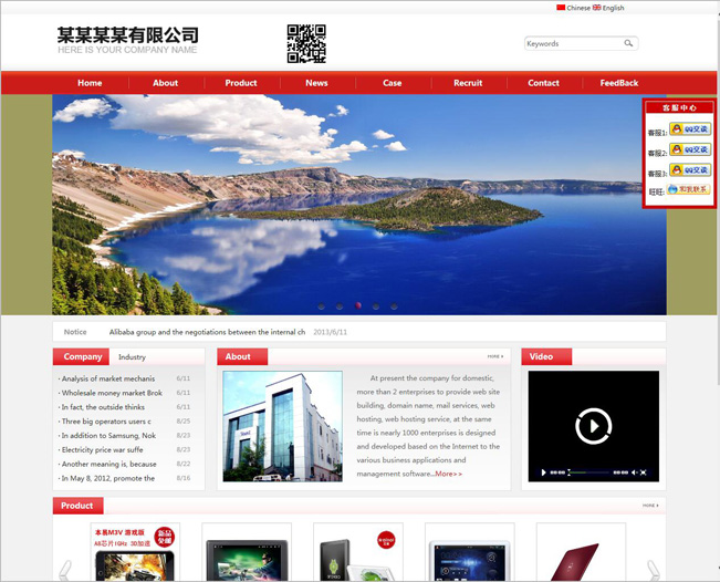 8.在线悬浮客服---------全站每个页面都有QQ和旺旺悬浮客服,美观实用,方便您在线开展业务,直接和客户通过QQ或旺旺等进行网络沟通,且后台可以修改在线客服,修改后重新一键生成全站静态即可。