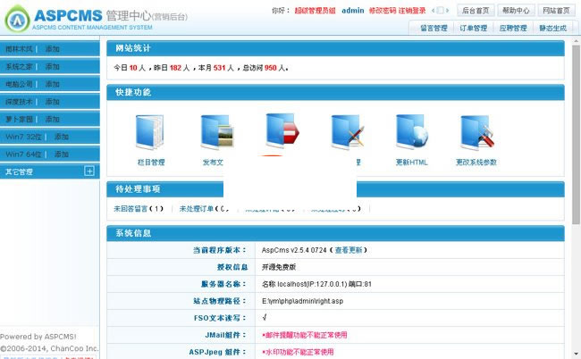 系统之家-通用下载系统是 由岁月工作室基于aspCMS二次研发而成。我们致力于中小企业网站的搭建。根据现有企业的需求。开发适合企业的模块, 让企业可以轻松搭建适合自己企业的网站,后台功能强大,管理便捷。代码简单易懂,适合二次开发。 我们认为“简单就是美”,因此一直以来,岁月工作室在开发过程中无处不充分考虑用户的使用习惯,尽最大可能降低用户的使用门槛,让用户关注于内容维护本身,而不需 要投入过多的时间来学习系统的使用技巧,在细节处下大工夫。再次声明,本系统版权归原著作者所有,但由于该系统由我工作室二次研发而成,发布网络纯属提供学习参考,不可作为商业运营,请学习参考后于24小时内删除,长期运营建议购买商业版本。