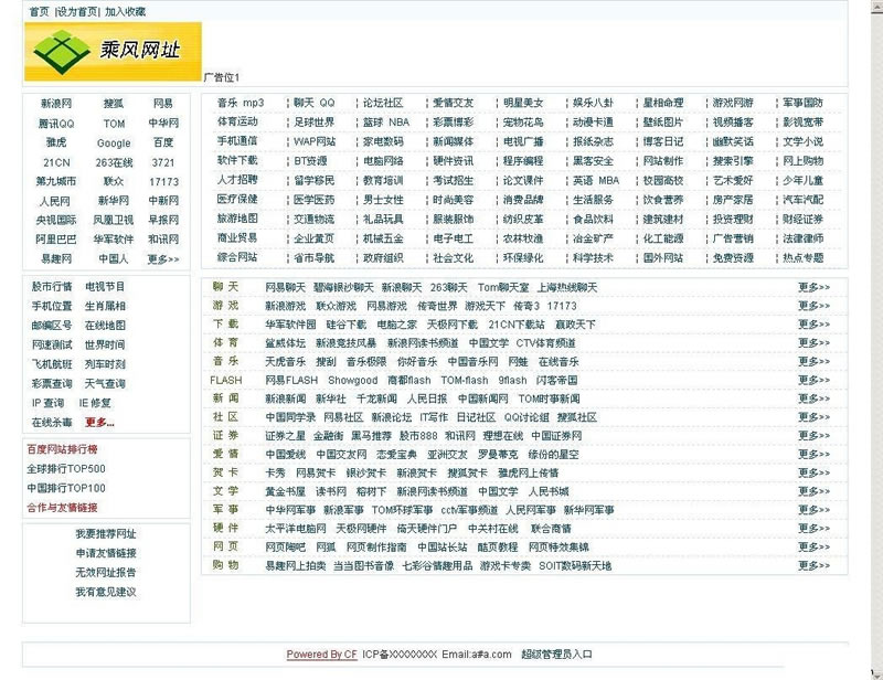 生成静态页面,支持二级栏目,自带4000多条网址数据,点击报表,支持框架打开网址
