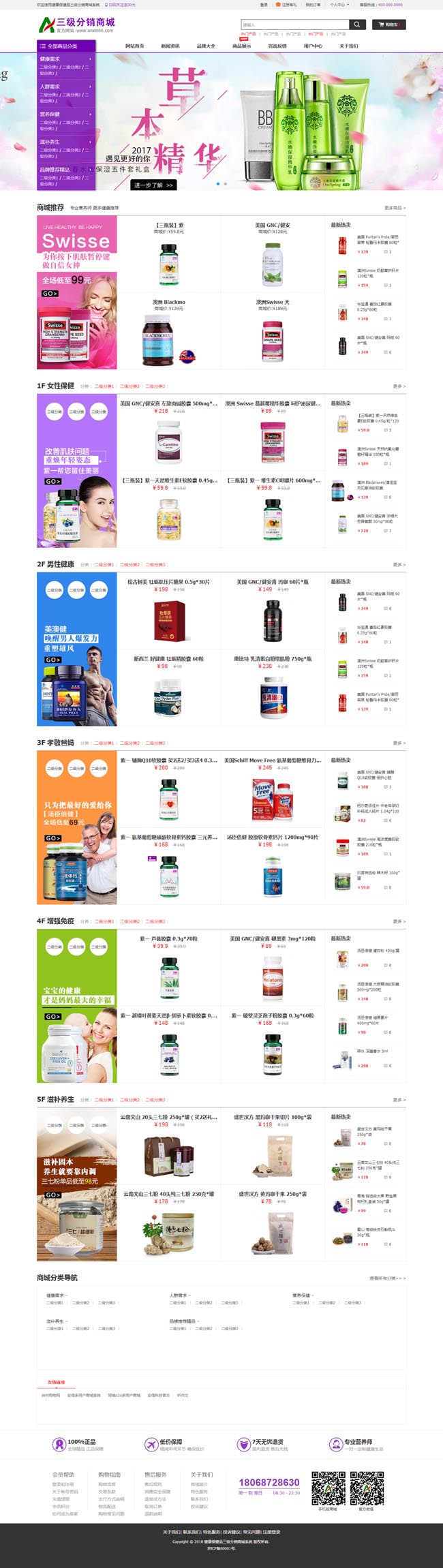 1.新发布健康营养保健行业分销商城PC端模版。
