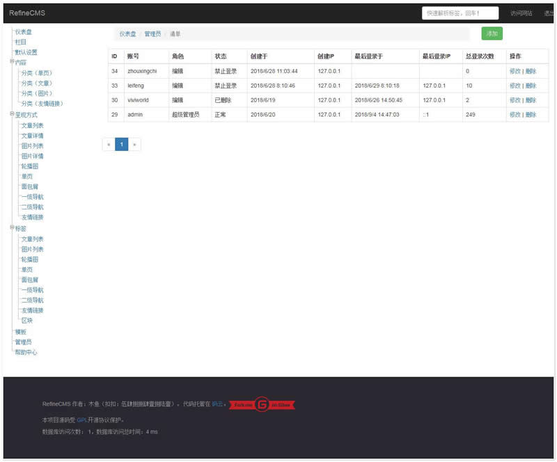 RefineCMS,简单的内容管理系统。